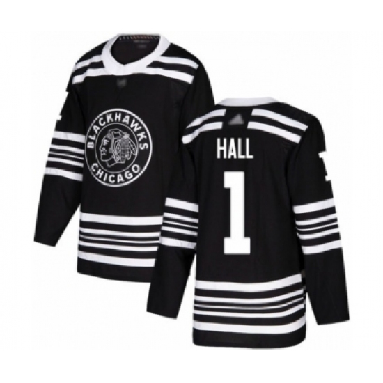 Men's Chicago Blackhawks #1 Glenn Hall Black 2019 Winter Classic Fanatics Branded Breakaway NHL Jersey