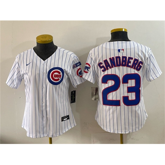 Youth Chicago Cubs #23 Ryne Sandberg White Pinstripe 'Ryne Sandberg Tribute' Vapor Limited V3 Stitched Baseball Jersey