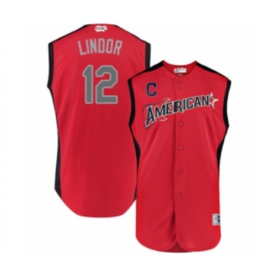Youth Cleveland Indians #12 Francisco Lindor Authentic Red American League 2019 Baseball All-Star Jersey
