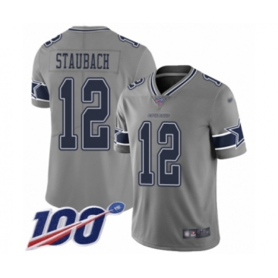 >Youth Dallas Cowboys #12 Roger Staubach Limited Gray Inverted Legend 100th Season Football Jersey