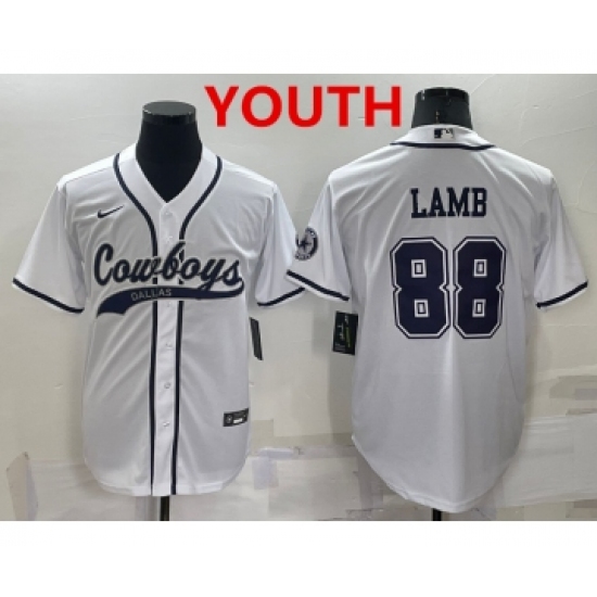 Youth Dallas Cowboys #88 CeeDee Lamb White Stitched Cool Base Nike Baseball Jersey