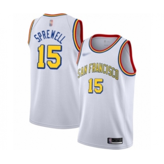 Youth Golden State Warriors #15 Latrell Sprewell Swingman White Hardwood Classics 2019 Basketball Finals Bound Basketball Jersey