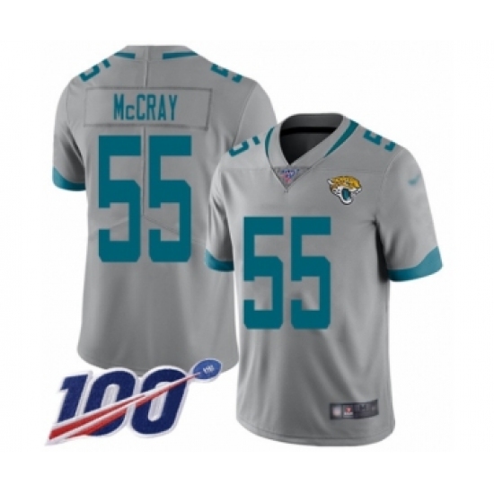 >Youth Jacksonville Jaguars #55 Lerentee McCray Silver Inverted Legend Limited 100th Season Football Jersey