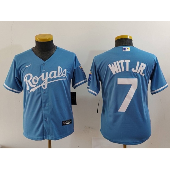 >Youth Kansas City Royals #7 Bobby Witt Jr Light Blue Cool Base Stitched Jersey