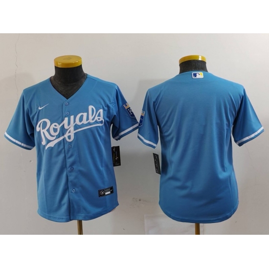 >Youth Kansas City Royals Blank Light Blue Cool Base Stitched Jersey