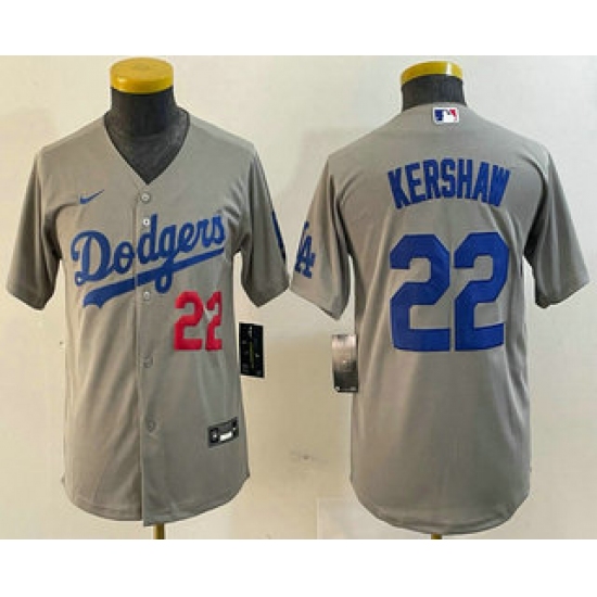 Youth Los Angeles Dodgers #22 Clayton Kershaw Number Grey Stitched Cool Base Nike Jersey