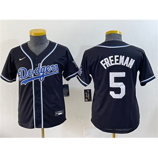 >Youth Los Angeles Dodgers #5 Freddie Freeman Black Stitched Baseball Jersey
