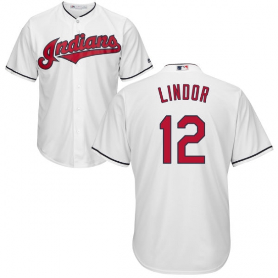 Home>MLB>Cleveland Indians>Francisco Lindor>Youth Majestic Cleveland Indians #12 Francisco Lindor Replica White Home Cool Base MLB Jersey