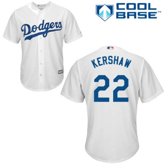 Youth Majestic Los Angeles Dodgers #22 Clayton Kershaw Authentic White Home Cool Base MLB Jersey