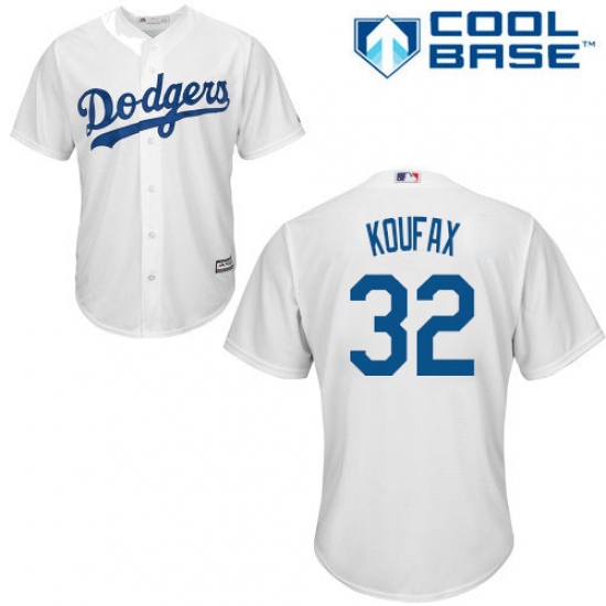 Youth Majestic Los Angeles Dodgers #32 Sandy Koufax Replica White Home Cool Base MLB Jersey