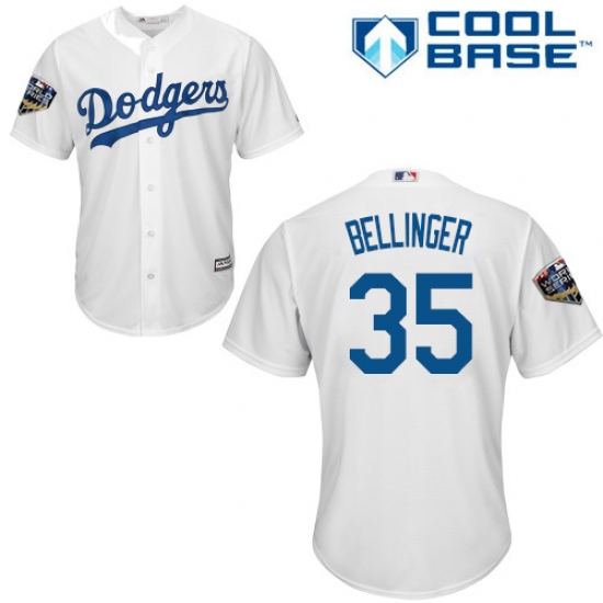 Youth Majestic Los Angeles Dodgers #35 Cody Bellinger Authentic White Home Cool Base 2018 World Series MLB Jersey