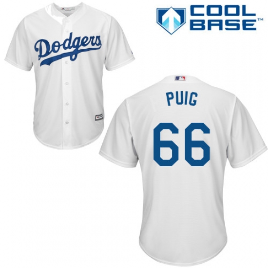 Home>MLB>Los Angeles Dodgers>Yasiel Puig>Youth Majestic Los Angeles Dodgers #66 Yasiel Puig Replica White Home Cool Base MLB Jersey