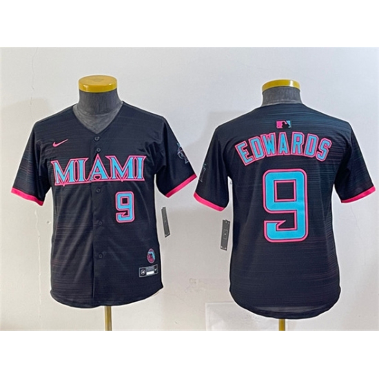 >Youth Miami Marlins #9 Xavier Edwards Black 2025 City Connect Limited Stitched Jersey