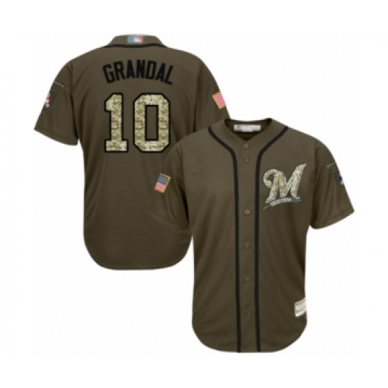 Men's Milwaukee Brewers #10 Yasmani Grandal Authentic Green Salute to Service Baseball Jersey