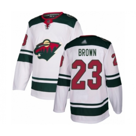 Men's Minnesota Wild #23 J.T. Brown Authentic White Away Hockey Jersey