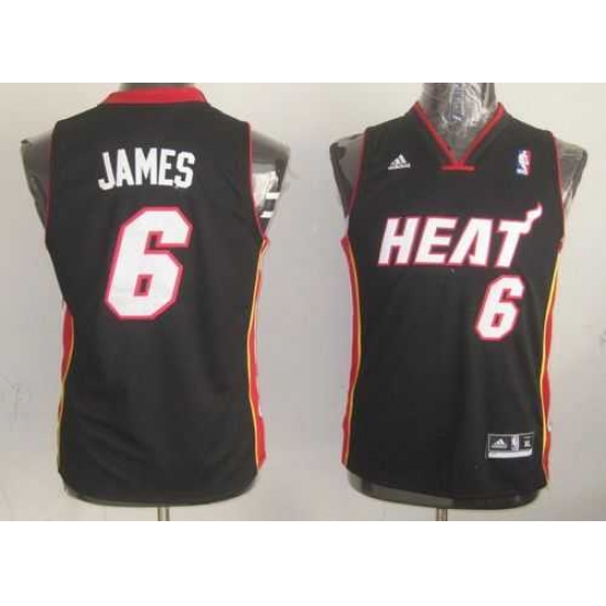 Youth NBA Miami Heat #6 LeBron James Black Stitched Jersey