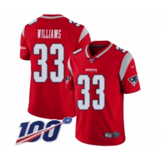 >Youth New England Patriots #33 Joejuan Williams Limited Red Inverted Legend 100th Season Football Jersey