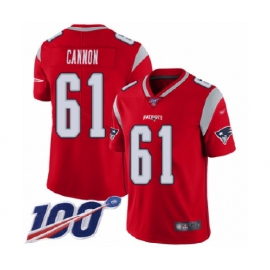 >Youth New England Patriots #61 Marcus Cannon Limited Red Inverted Legend 100th Season Football Jersey