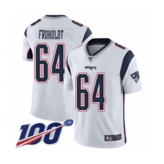 Men's New England Patriots #64 Hjalte Froholdt White Vapor Untouchable Limited Player 100th Season Football Jersey