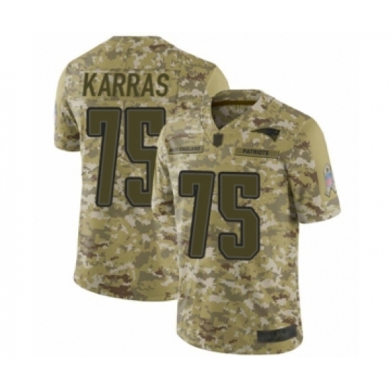 >Youth New England Patriots #75 Ted Karras Limited Camo 2018 Salute to Service Football Jersey