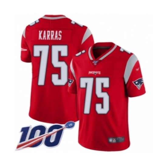 >Youth New England Patriots #75 Ted Karras Limited Red Inverted Legend 100th Season Football Jersey