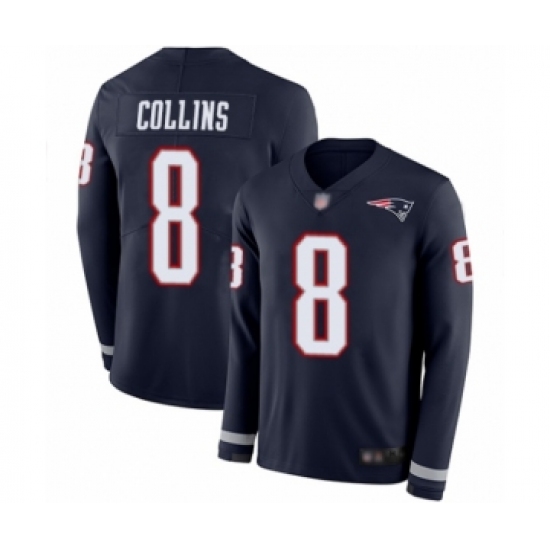 Youth New England Patriots #8 Jamie Collins Limited Navy Blue Therma Long Sleeve Football Jersey