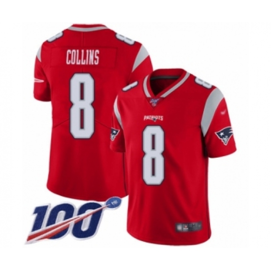 Youth New England Patriots #8 Jamie Collins Limited Red Inverted Legend 100th Season Football Jersey