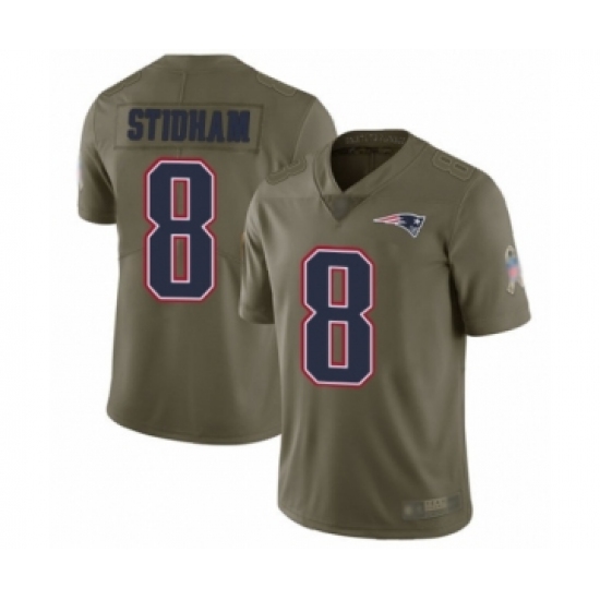 >Youth New England Patriots #8 Jarrett Stidham Limited Olive 2017 Salute to Service Football Jersey