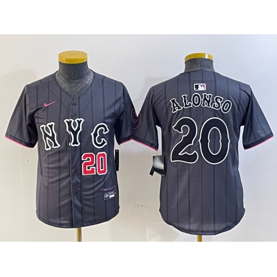 >Youth New York Mets #20 Pete Alonso Number Grey 2024 City Connect Cool Base Stitched Jerseys