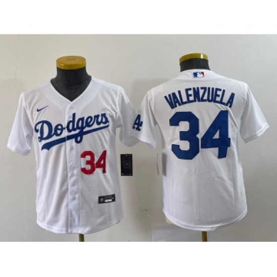 Youth Majestic Los Angeles Dodgers #34 Fernando Valenzuela Replica White Home Cool Base MLB Jersey
