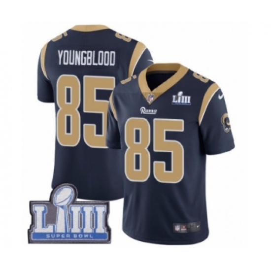 >Youth Nike Los Angeles Rams #85 Jack Youngblood Navy Blue Team Color Vapor Untouchable Limited Player Super Bowl LIII Bound NFL Jersey