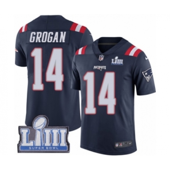 >Youth Nike New England Patriots #14 Steve Grogan Limited Navy Blue Rush Vapor Untouchable Super Bowl LIII Bound NFL Jersey
