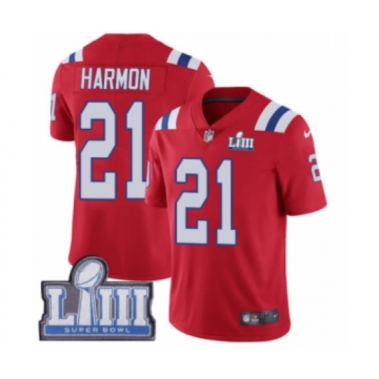 Men's Nike New England Patriots #21 Duron Harmon Red Alternate Vapor Untouchable Elite Player Super Bowl LIII Bound NFL Jersey