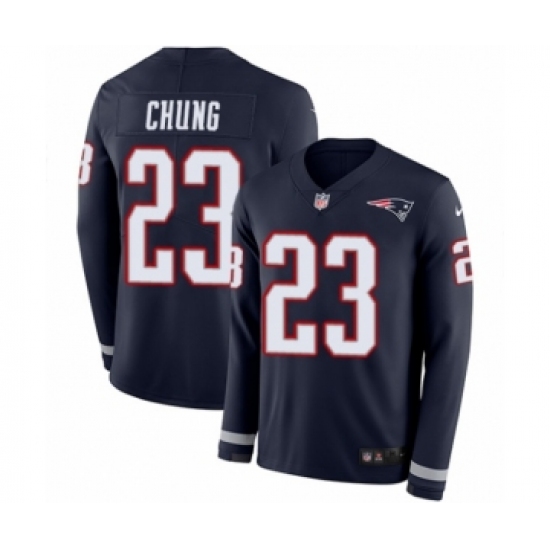 >Youth Nike New England Patriots #23 Patrick Chung Limited Navy Blue Therma Long Sleeve NFL Jersey