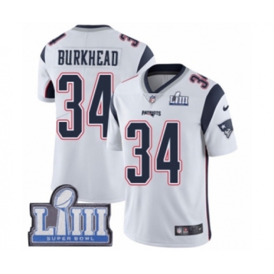 Youth Nike New England Patriots #34 Rex Burkhead White Vapor Untouchable Limited Player Super Bowl LIII Bound NFL Jersey