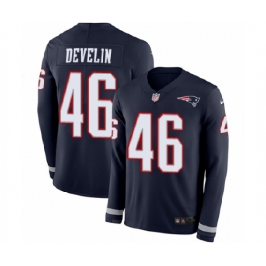 Youth Nike New England Patriots #46 James Develin Limited Navy Blue Therma Long Sleeve NFL Jersey