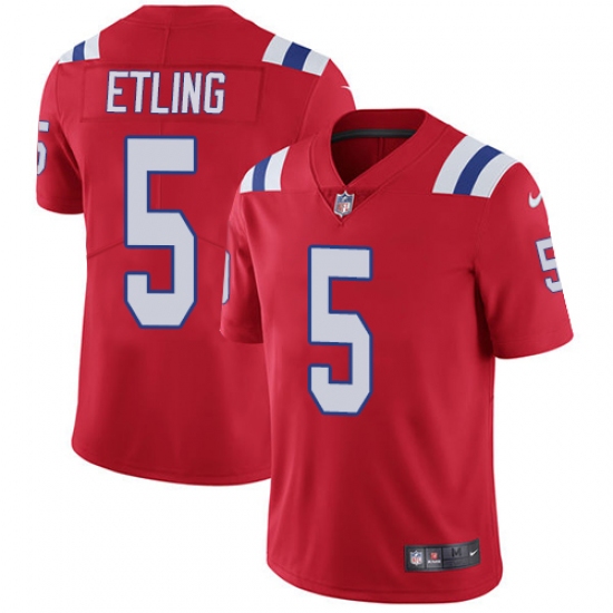 Men's Nike New England Patriots #5 Danny Etling Red Alternate Vapor Untouchable Limited Player NFL Jersey