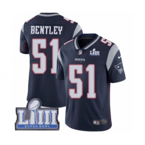 Youth Nike New England Patriots #51 Ja'Whaun Bentley Navy Blue Team Color Vapor Untouchable Limited Player Super Bowl LIII Bound NFL Jersey