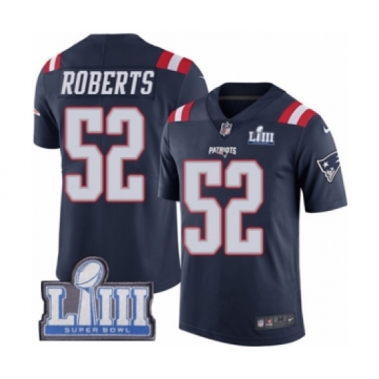 >Youth Nike New England Patriots #52 Elandon Roberts Limited Navy Blue Rush Vapor Untouchable Super Bowl LIII Bound NFL Jersey
