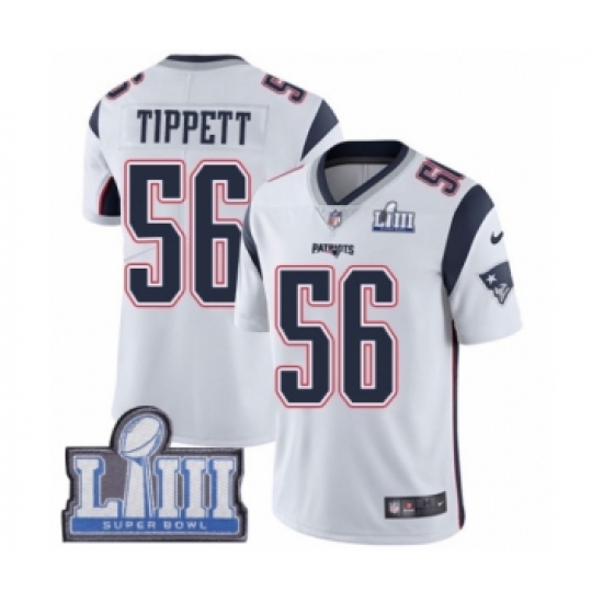 >Youth Nike New England Patriots #56 Andre Tippett White Vapor Untouchable Limited Player Super Bowl LIII Bound NFL Jersey