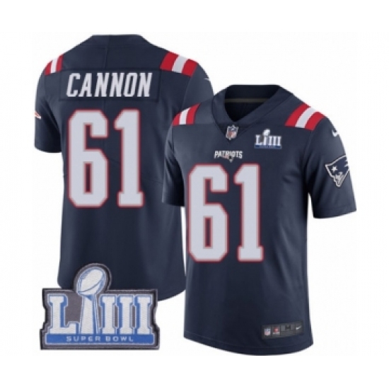 >Youth Nike New England Patriots #61 Marcus Cannon Limited Navy Blue Rush Vapor Untouchable Super Bowl LIII Bound NFL Jersey