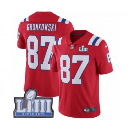 >Youth Nike New England Patriots #87 Rob Gronkowski Red Alternate Vapor Untouchable Limited Player Super Bowl LIII Bound NFL Jersey