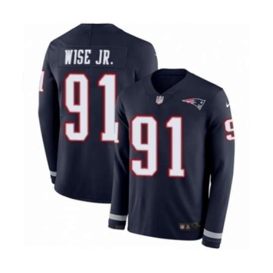 Youth Nike New England Patriots #91 Deatrich Wise Jr Limited Navy Blue Therma Long Sleeve NFL Jersey