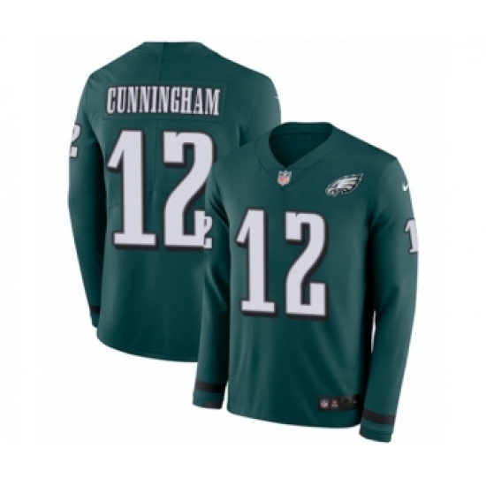 Youth Nike Philadelphia Eagles #12 Randall Cunningham Limited Green Therma Long Sleeve NFL Jersey