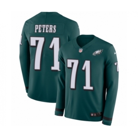 >Youth Nike Philadelphia Eagles #71 Jason Peters Limited Green Therma Long Sleeve NFL Jersey