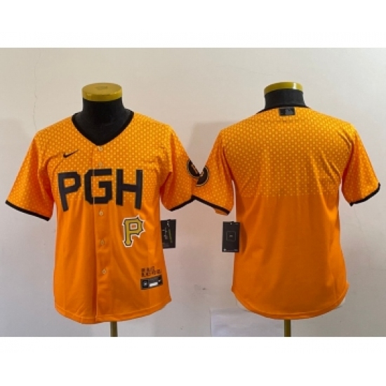 Youth Nike Pittsburgh Pirates Blank Yellow 2023 City Connect Stitched Jersey1