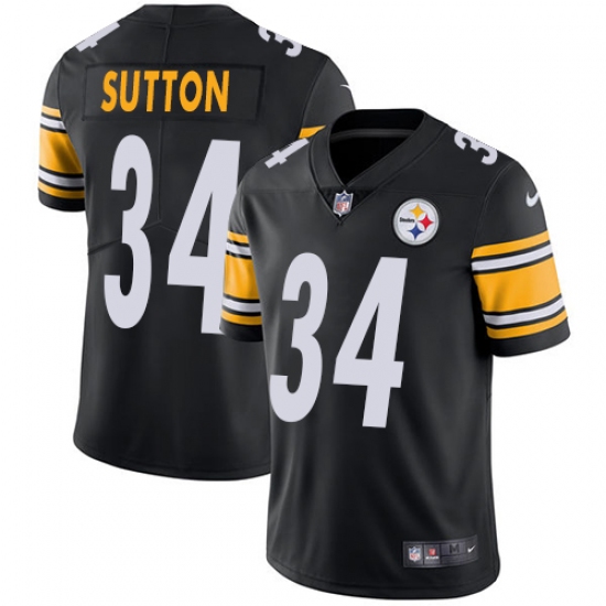 Home>NFL>Pittsburgh Steelers>Cameron Sutton>Youth Nike Pittsburgh Steelers #34 Cameron Sutton Black Team Color Vapor Untouchable Limited Player NFL Jersey