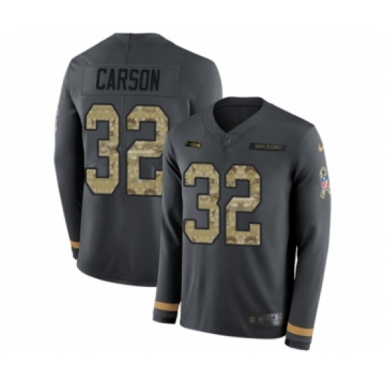 Youth Nike Seattle Seahawks #32 Chris Carson Limited Black Salute to Service Therma Long Sleeve NFL Jersey