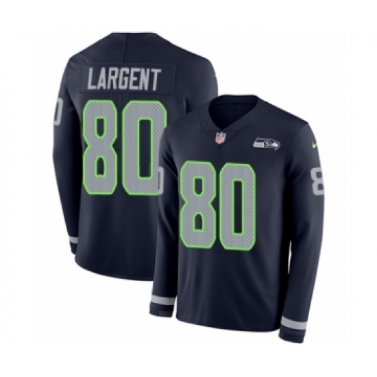 Men's Nike Seattle Seahawks #80 Steve Largent Limited Navy Blue Therma Long Sleeve NFL Jersey