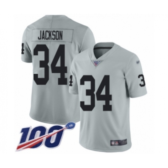 >Youth Oakland Raiders #34 Bo Jackson Limited Silver Inverted Legend 100th Season Football Jersey
